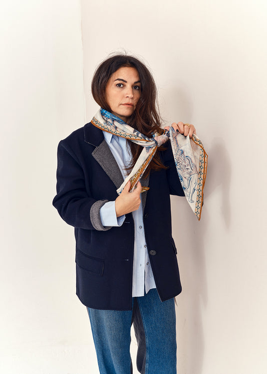 Chloé Stora propose un vestiaire intemporel masculin-féminin. Des collections raisonnées, pour des pièces qui durent dans le temps. Elle souhaite habiller une fille qui souhaite exprimer une dégaine décontractée tout en restant elle-même et confortable dans ses vêtements.