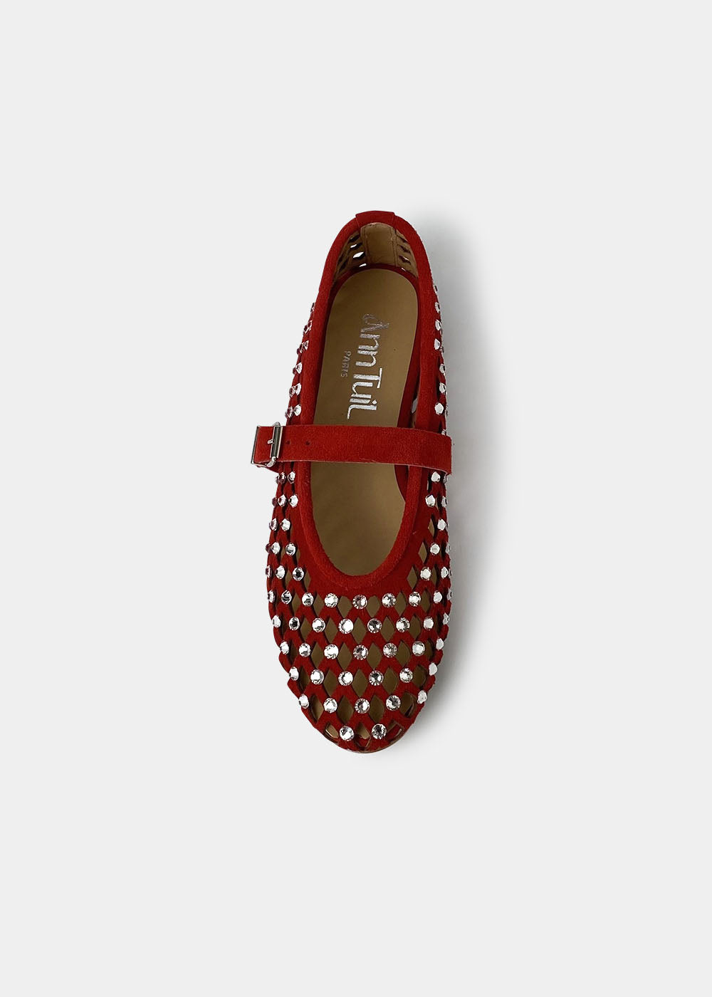 Les babies plates sont LES chaussures phares de la saison. Craquez pour notre babies modèle Gaia en velours rouge. Le côté ajouré et les strass donnent à cette paire un côté très original et tendance. Elles chaussent bien, vous pouvez prendre votre taille habituelle.