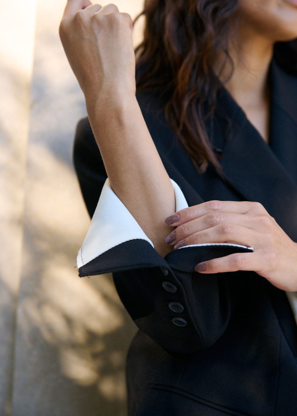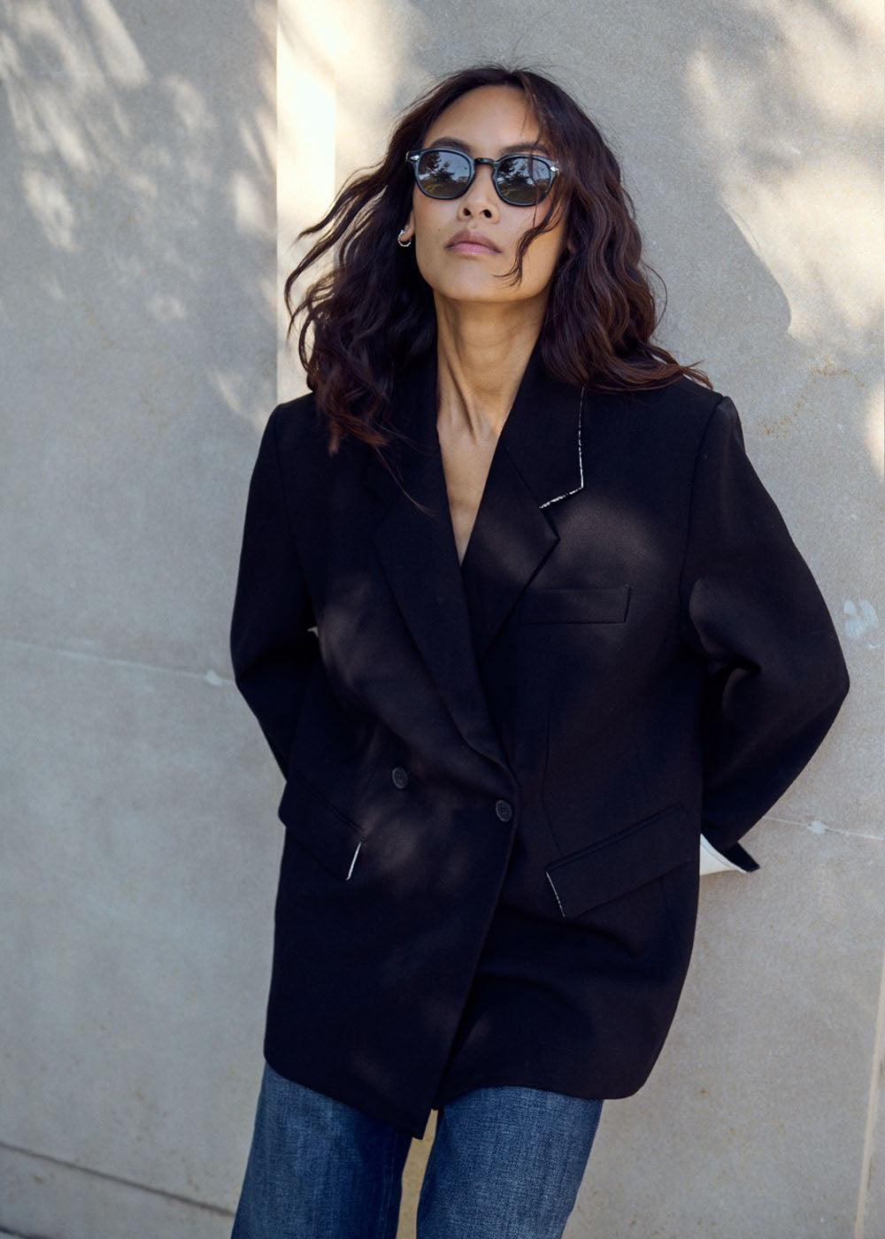 La veste Ann Tuil EFW250061 oversize à double boutonnage revisite le tailoring avec une allure moderne et décontractée. Ses lignes droites et son tombé structuré en font une pièce forte, idéale pour rehausser un jean ou une tenue minimaliste. Élégance effortless garantie, du bureau au week-end.