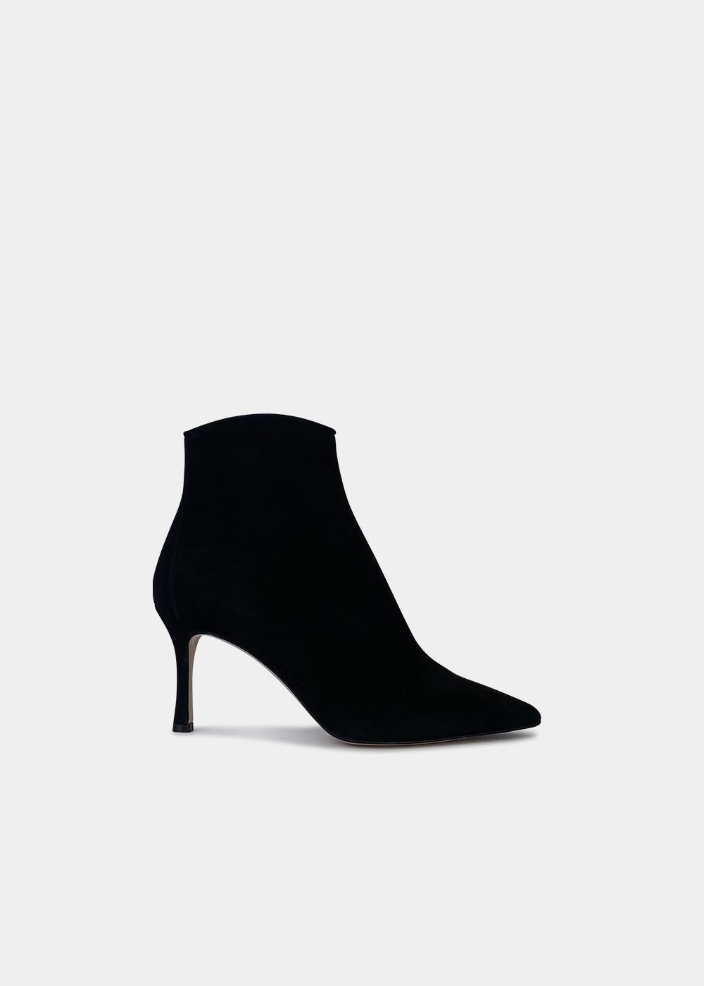 Élégantes et résolument féminines, les bottines à talon Ann Tuil Mind séduisent par leur silhouette élancée et leur allure raffinée. Confectionnées en velours noir, elles offrent une texture douce et raffinée. Le bout pointu ajoute une touche de sophistication, idéale pour sublimer vos tenues, de jour comme de nuit.