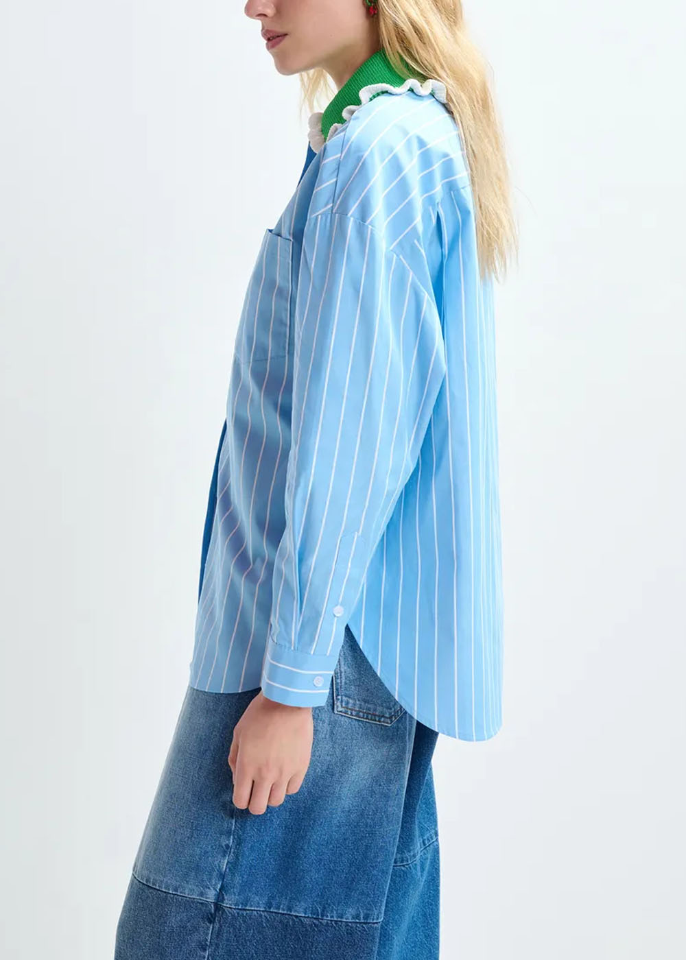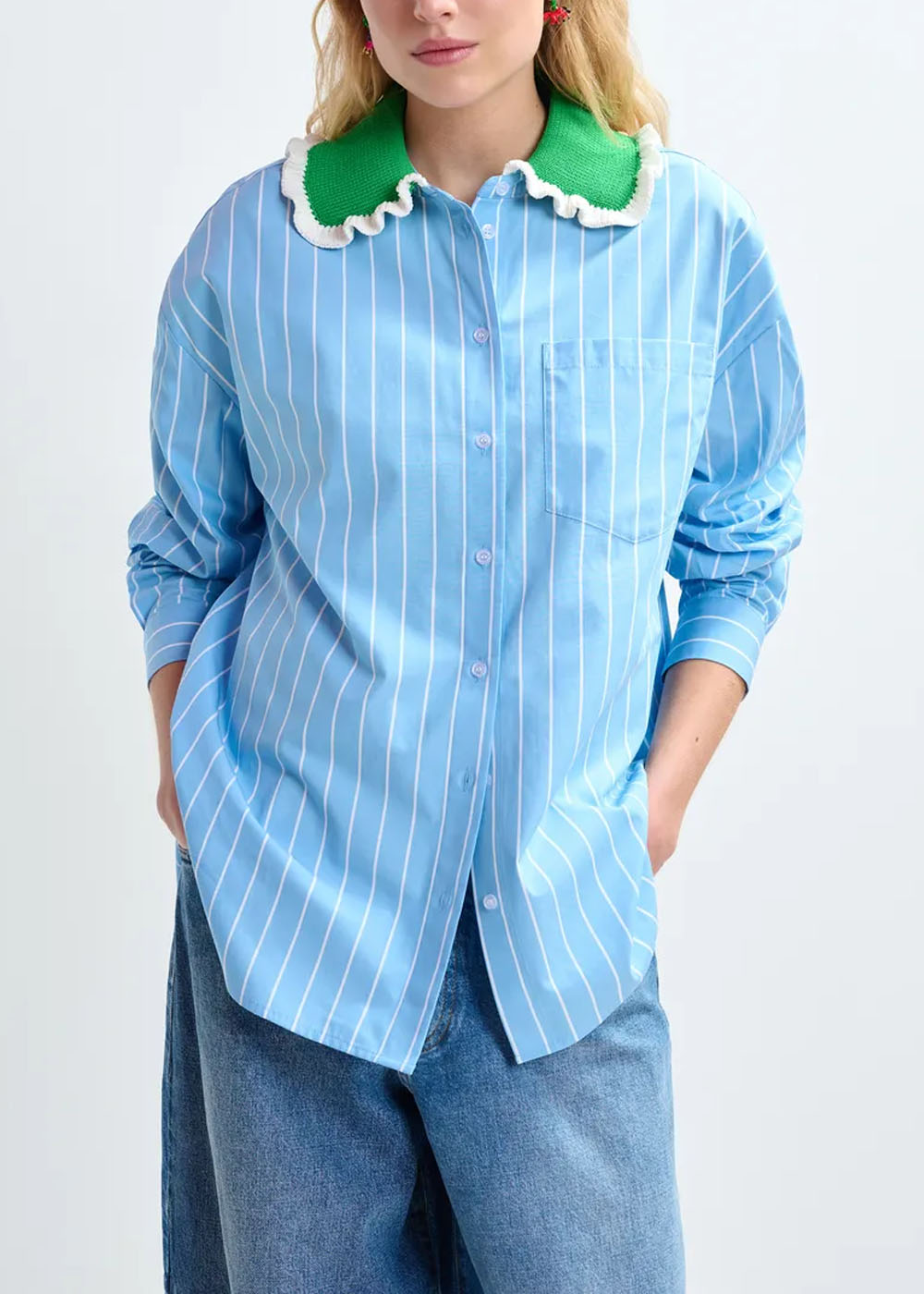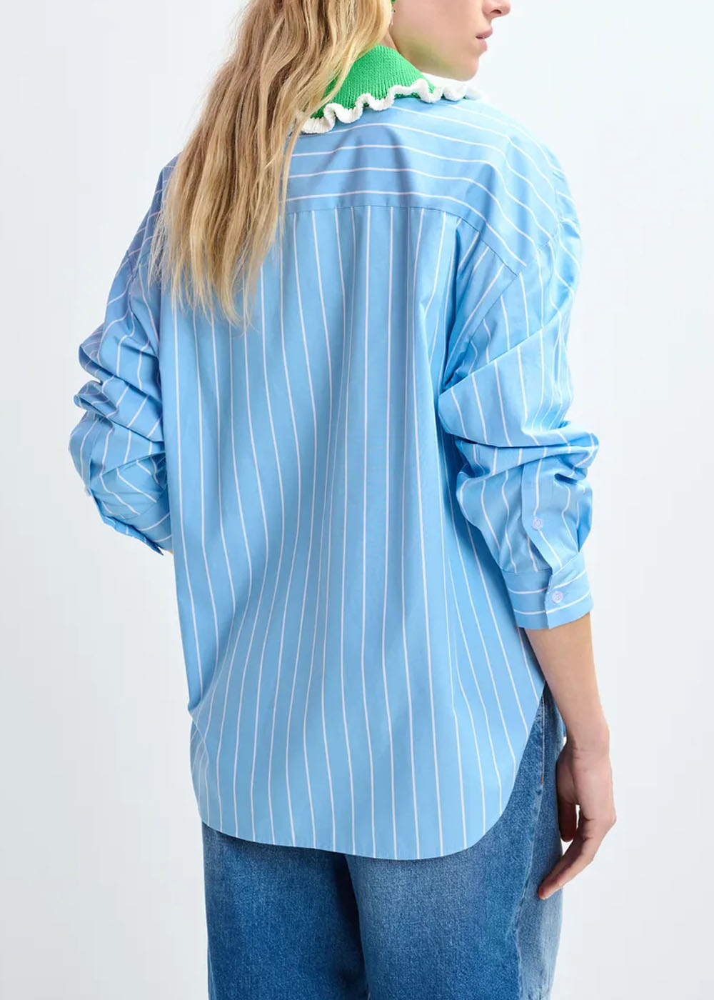 CHEMISE ESSENTIEL ANTWERP JOYFUL CROCHET COLLAR Rayure bleu col crochet vert
