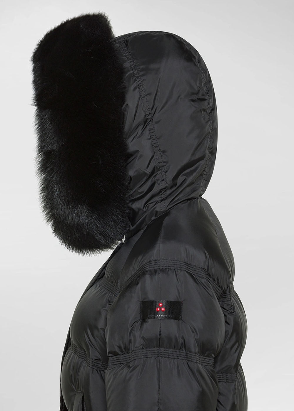 Doudoune matelassée Peuterey modèle Takan à large matelassage, confectionnée en polyester 100 % recyclé post-consommation ultra-léger, doux au toucher et à la structure ultra-compacte. Son garnissage en duvet d'oie certifié offre une chaleur exceptionnelle tout en restant léger, tandis que le traitement déperlant sans PFC protège de la pluie, sans produits chimiques nocifs. Son style sportswear urbain et sa coupe trapèze ajustable grâce à une ouverture zippée latérale complètent ce modèle. Capuche fixe ornée d'une bordure en fourrure de renard amovible ton sur ton. Poches passepoilées et fermeture à rabat et bouton dissimulant une fermeture zippée à double curseur. Ce modèle phare de la collection hiver Peuterey, désormais décliné dans les couleurs tendance de la saison, se porte également lors d'occasions élégantes et mondaines.