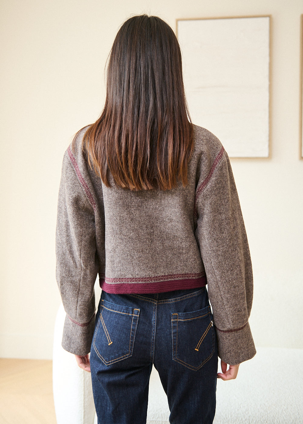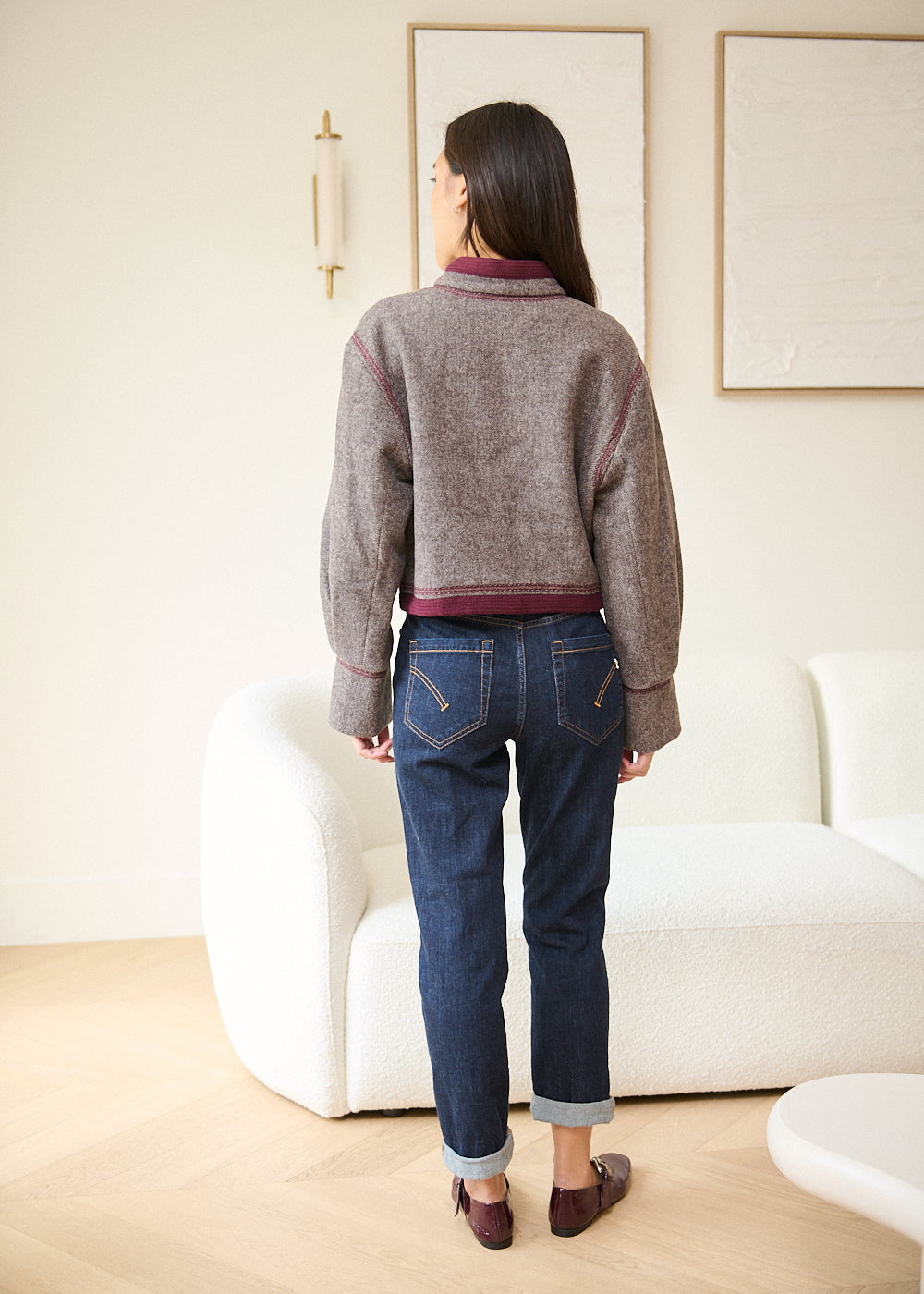- Pantalon ample à cinq poches Koons, taille standard, empiècement à boutons bijoux, longueur cheville.