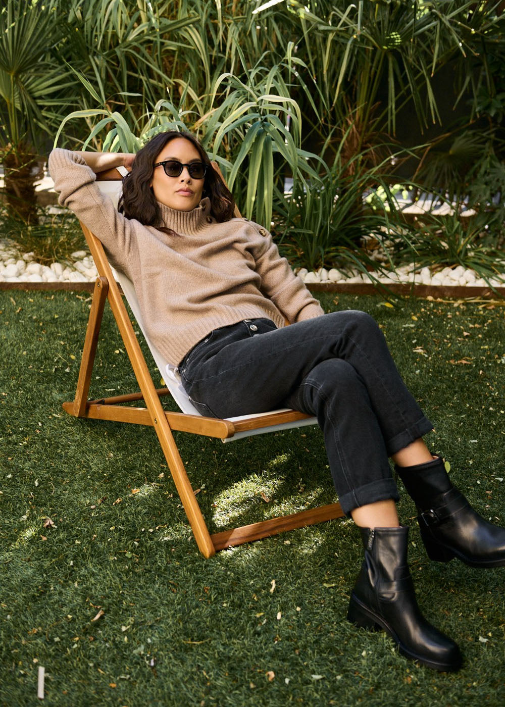 - Pantalon ample à cinq poches Koons, taille standard, empiècement à boutons bijoux, longueur cheville.
