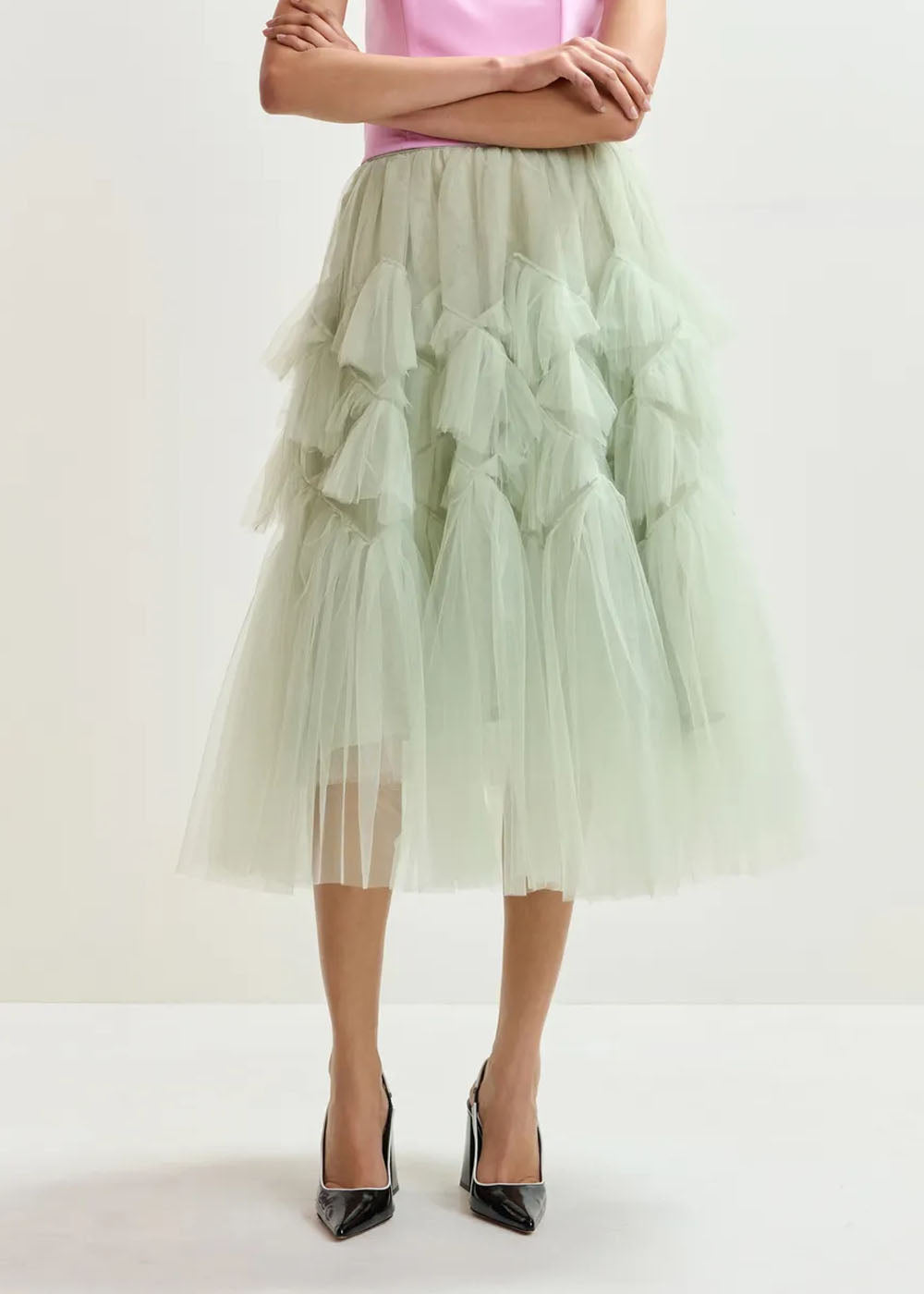 JUPE ESSENTIEL ANTWERP JACIE VOLUMINOUS TULLE SKIRT Vert amande