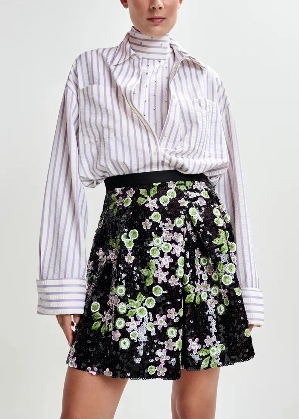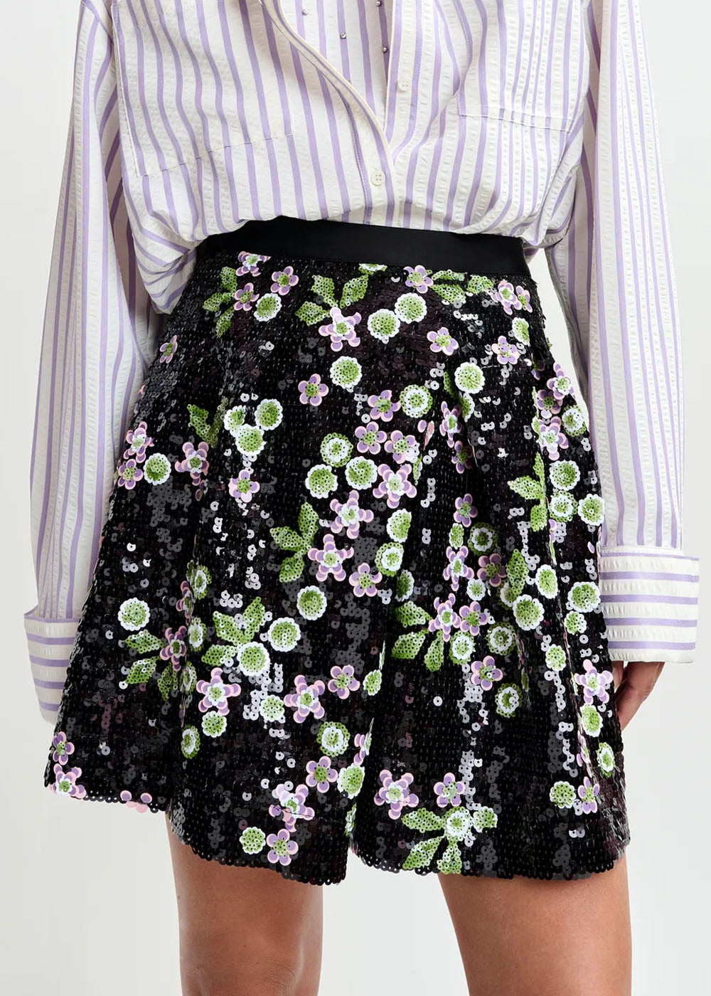 MINI JUPE ESSENTIEL ANTWERP JAPANESE Sequin noir/vert/rose