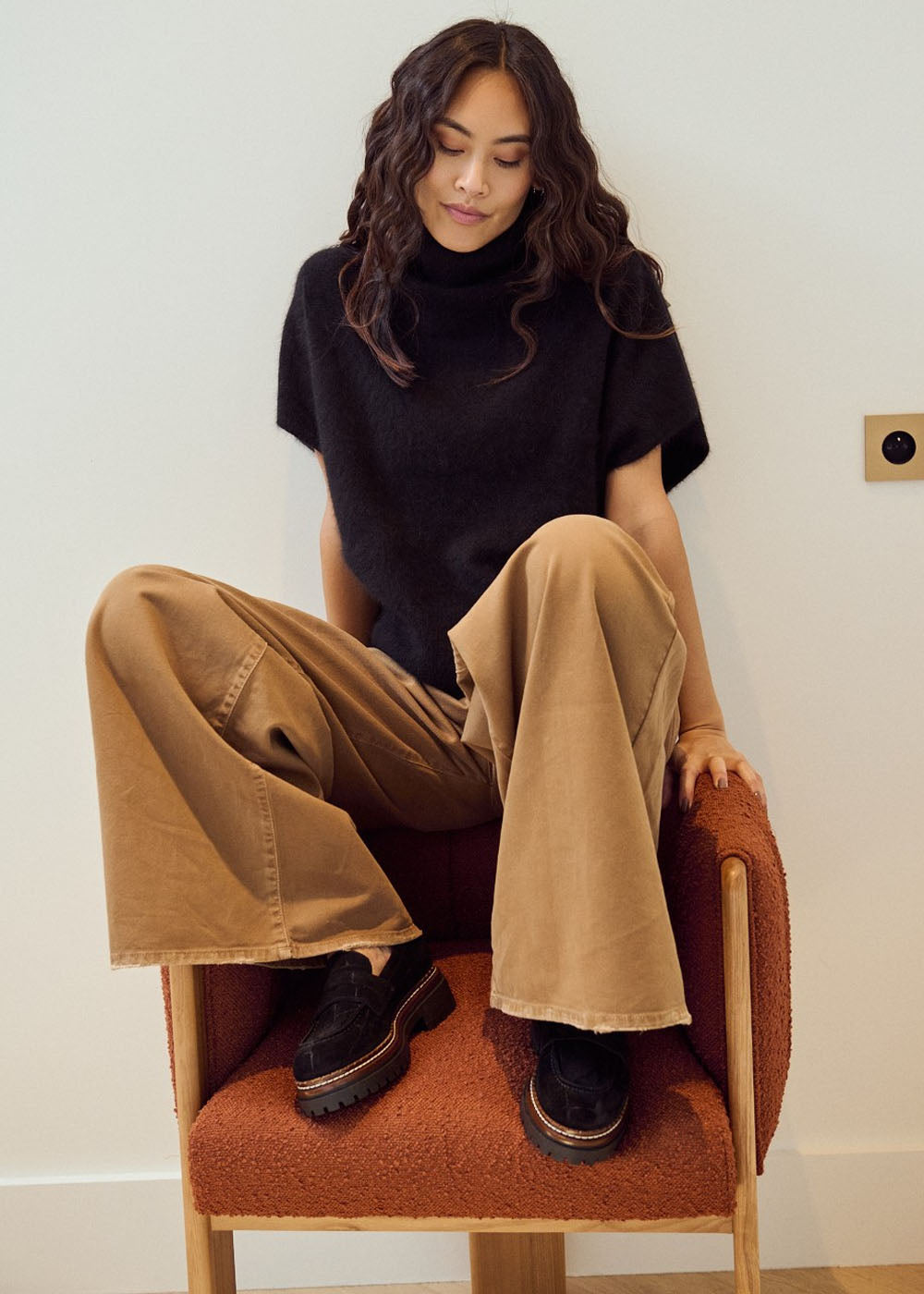 Le pull Estheme Cachemire modèle Vania JF4W060R à manches courtes, confectionné dans un doux mélange de cachemire et de raccoon, allie chaleur et légèreté. Son col roulé généreux et sa coupe oversize offrent un style décontracté et élégant. Idéal à superposer ou à porter à même la peau pour un look chic et confortable.