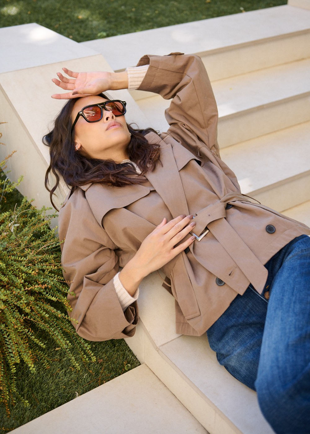 Le trench court Eleh modèle EFW250035 revisite un classique du vestiaire avec une touche moderne et décontractée. Doté d’un large col tailleur, d’épaules légèrement structurées et d’une ceinture à nouer, il souligne la taille tout en offrant une silhouette fluide. Sa coupe ample et son tissu souple en font une pièce confortable, idéale pour la mi-saison. À porter ouvert pour un look casual ou ceinturé pour une allure plus féminine.