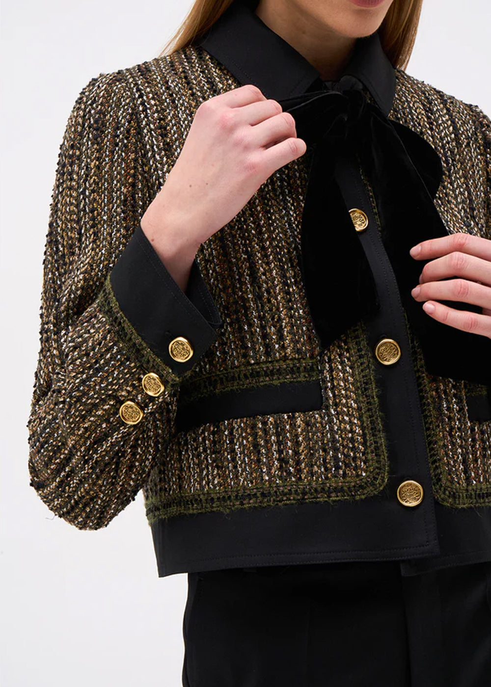 - Trois boutons dorés au bout des manches